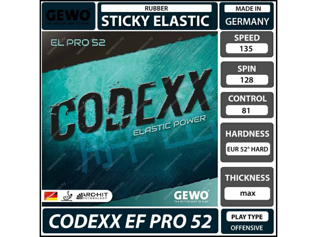 Poznámka | Ideálny poťah k silnej výbušnej hry aj v blízkosti stola krátkymi pohybmi. Vysoká rotácia a veľká spodná rotácia |