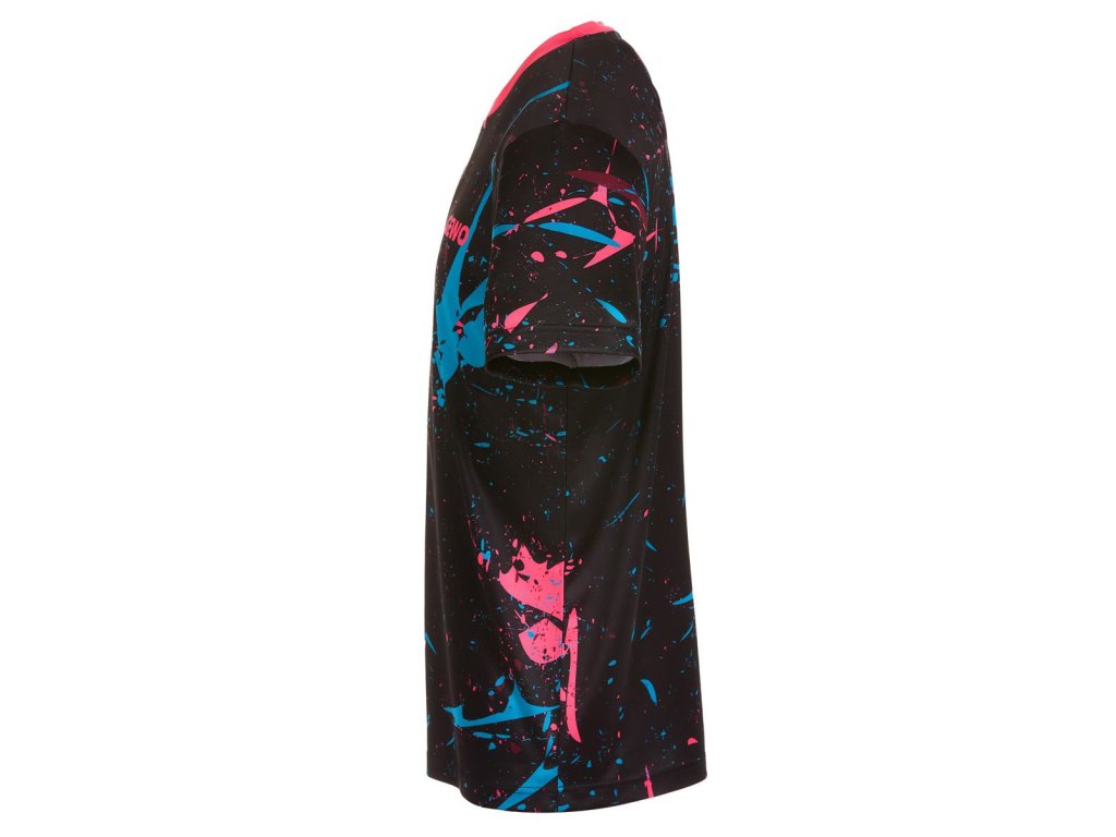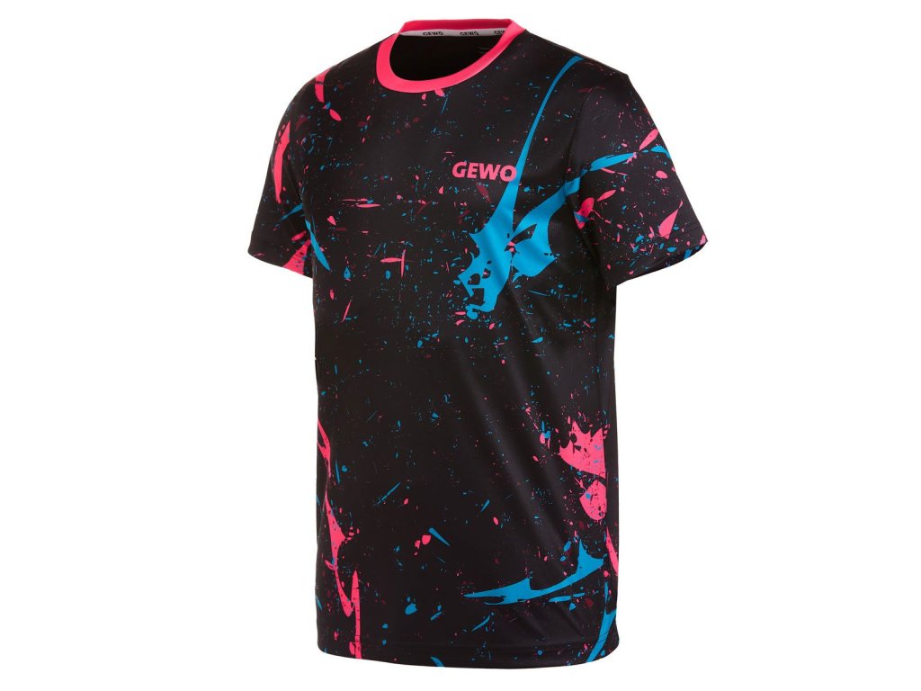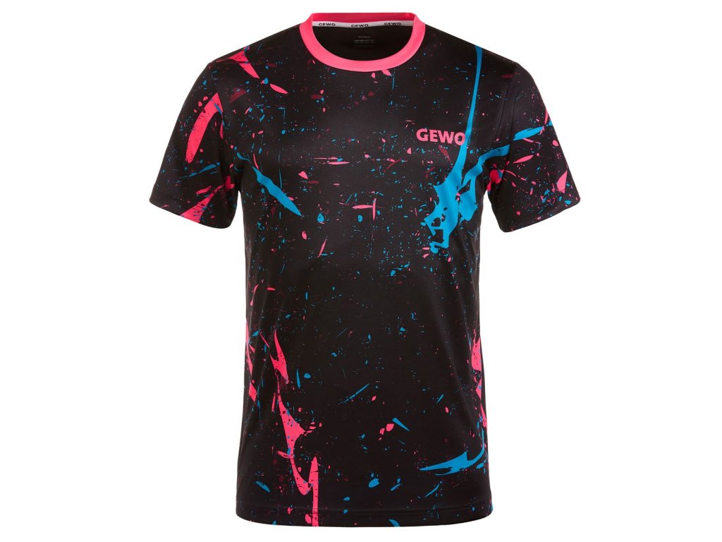 Radi vynikáte? Potom je tričko GEWO Tamarro presne pre vás! Toto tričko, inšpirované expresívnou silou akčnej maľby, kombinuje surovú energiu so športovou funkčnosťou. Živé, dynamické škvrny farby na tmavom pozadí vytvárajú jedinečný vzhľad – ideálny pre hráčov, ktorí chcú zanechať dojem, či už na stolnotenisovom kurte alebo mimo neho.