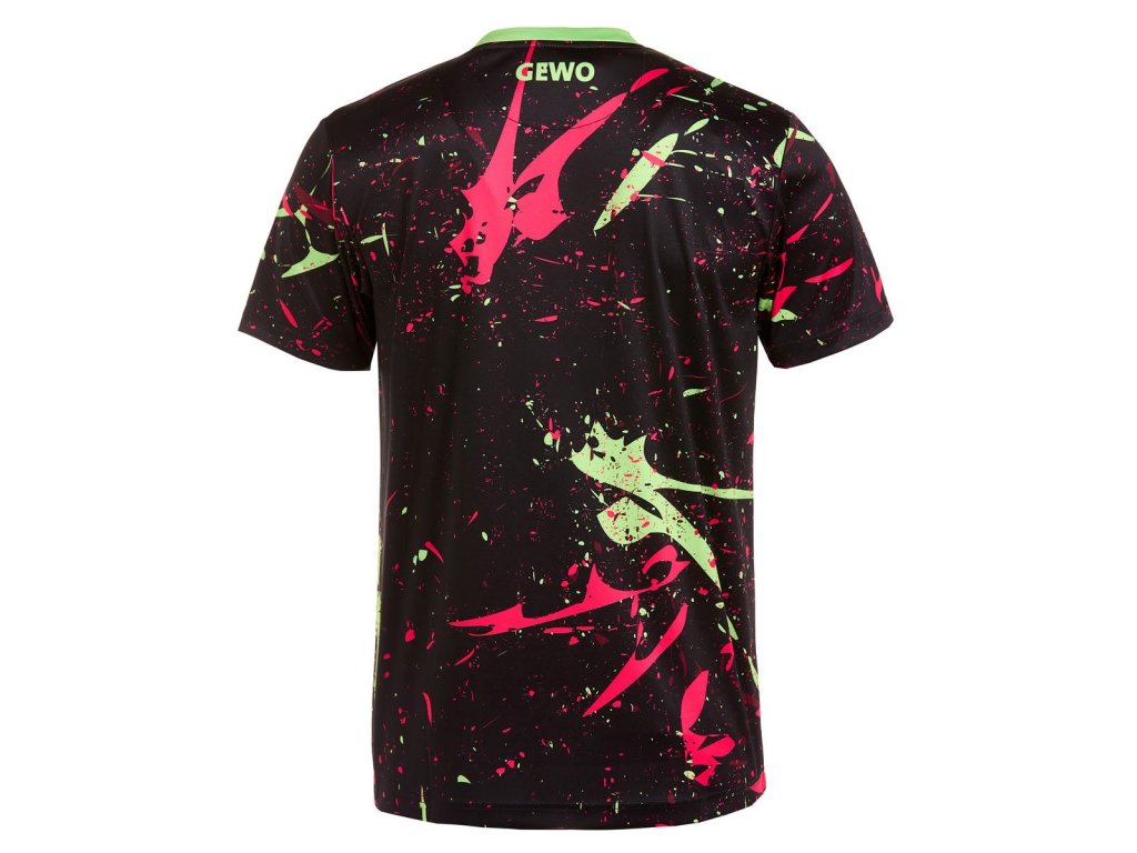 Radi vynikáte? Potom je tričko GEWO Tamarro presne pre vás! Toto tričko, inšpirované expresívnou silou akčného maľovania, kombinuje surovú energiu so športovou funkčnosťou. Živé, dynamické škvrny farby na tmavom pozadí vytvárajú jedinečný vzhľad – ideálny pre hráčov, ktorí chcú zanechať dojem, či už na stolnotenisovom kurte alebo mimo neho.